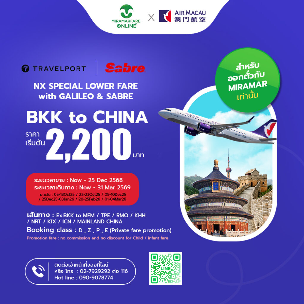 – ตรวจสอบรายละเอียดเพิ่มเติมได้ที่ Miramar Airlines fare > NX Promotion