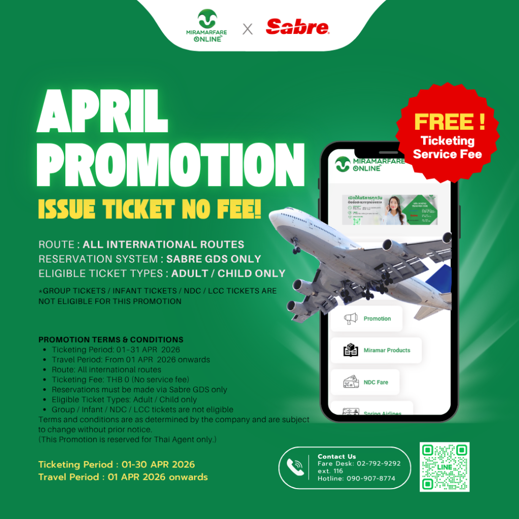 MIRAMAR x SABRE April SPECIAL PROMOTION NO FEE!